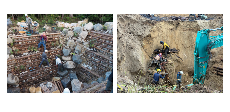 1.石川県七尾市、地震による液状化・陥没箇所における有機土木による創造的復旧工事