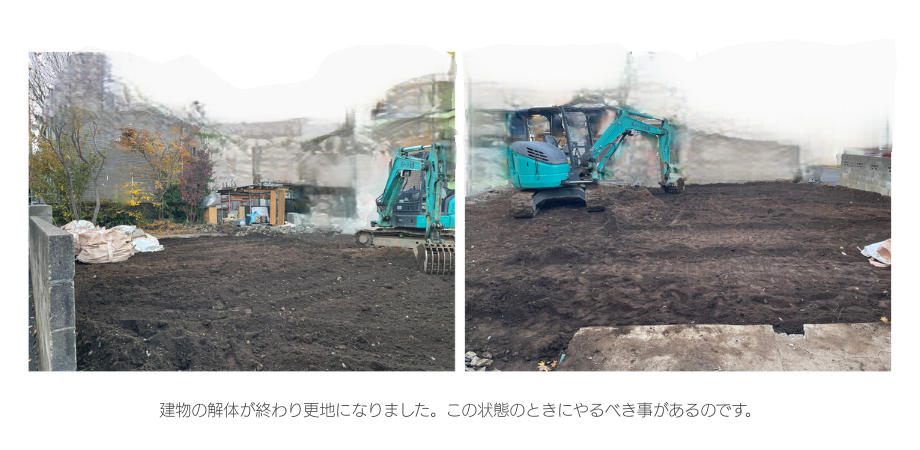 家屋解体後、更地のまま放置したり、建築工事中の重機や踏圧をそのままにしていると、土は雨でぬかるみ、乾くと硬化し、それが繰り返されて地表はすぐに荒廃していきます。