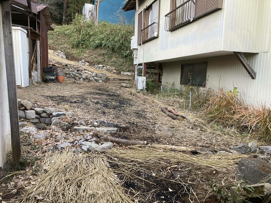 今回の施工場所近くにある、斜面地の畑用の土地、土が足りないということで、ここに盛り土をすることになりました。