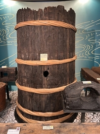 江戸時代の木樽マンホールと水道管(木樋)。